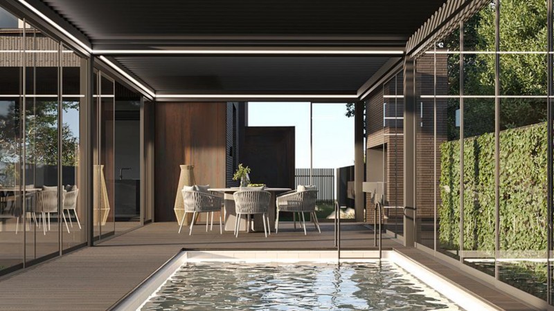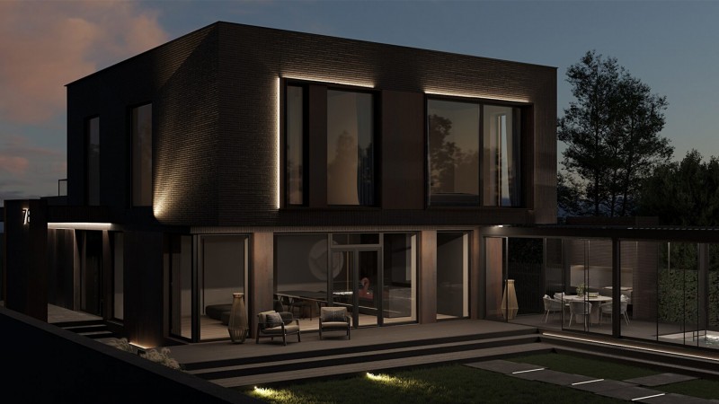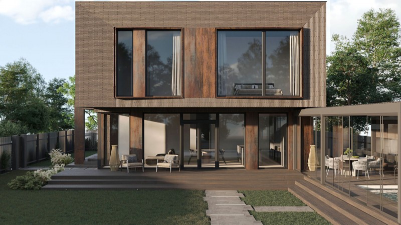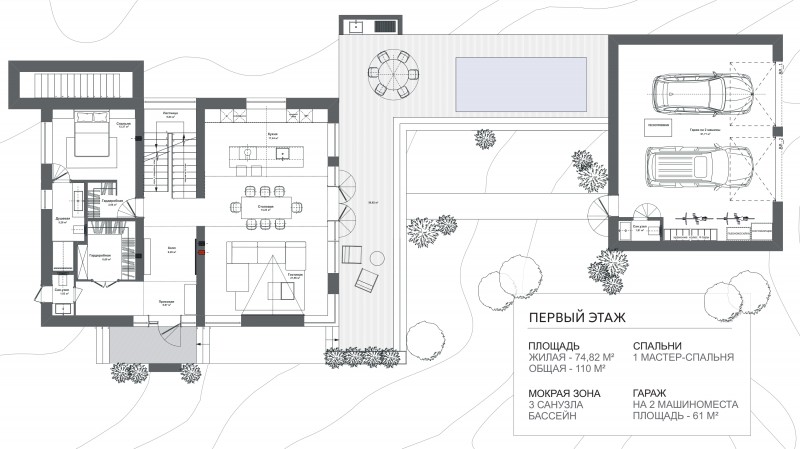 Этот современный П-образный дом идеально сочетает комфорт и функциональность. С двумя этажами, внутренним двором и бассейном, он предлагает уникальное пространство для жизни. Внутренний двор создаёт уединение и спокойствие, а бассейн станет идеальным местом для отдыха и развлечений.