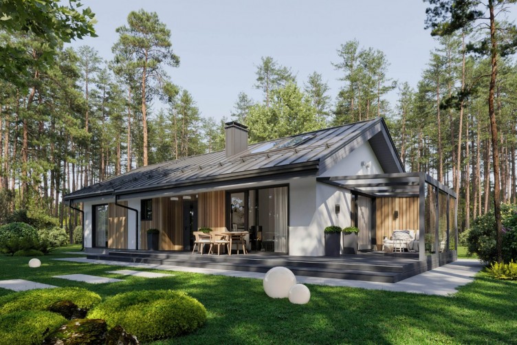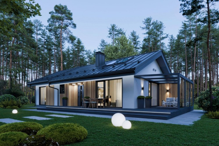 Фасад: декоративная штукатурка - 70%, планкен - 30 %, цоколь - профлист, отливы, капельник - металлические